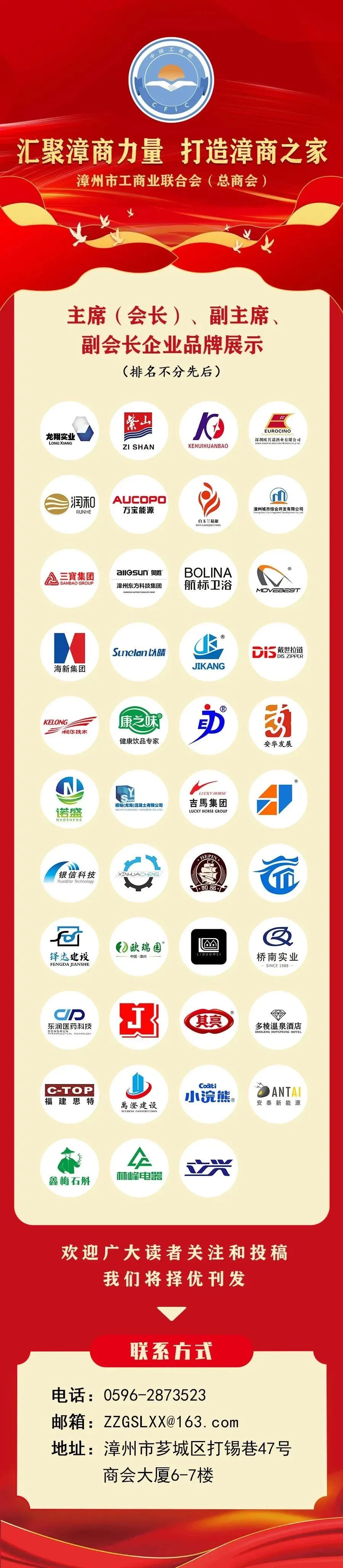 漳州万通电气设备有限公司法人代表张永刚任会长,漳州金多来餐饮有限公司董事长候海水当选监事长。商会还同步组建了青年企业家工作部,漳州市惠朋贸易有限公司董事长张向东,担任漳州市河北商会青年企业家工作部部长。