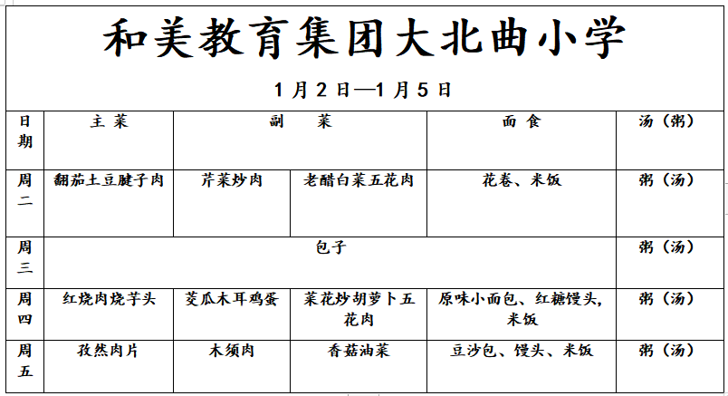 【校园食谱】“食”刻相伴—和美教育集团大北曲小学第19周食谱