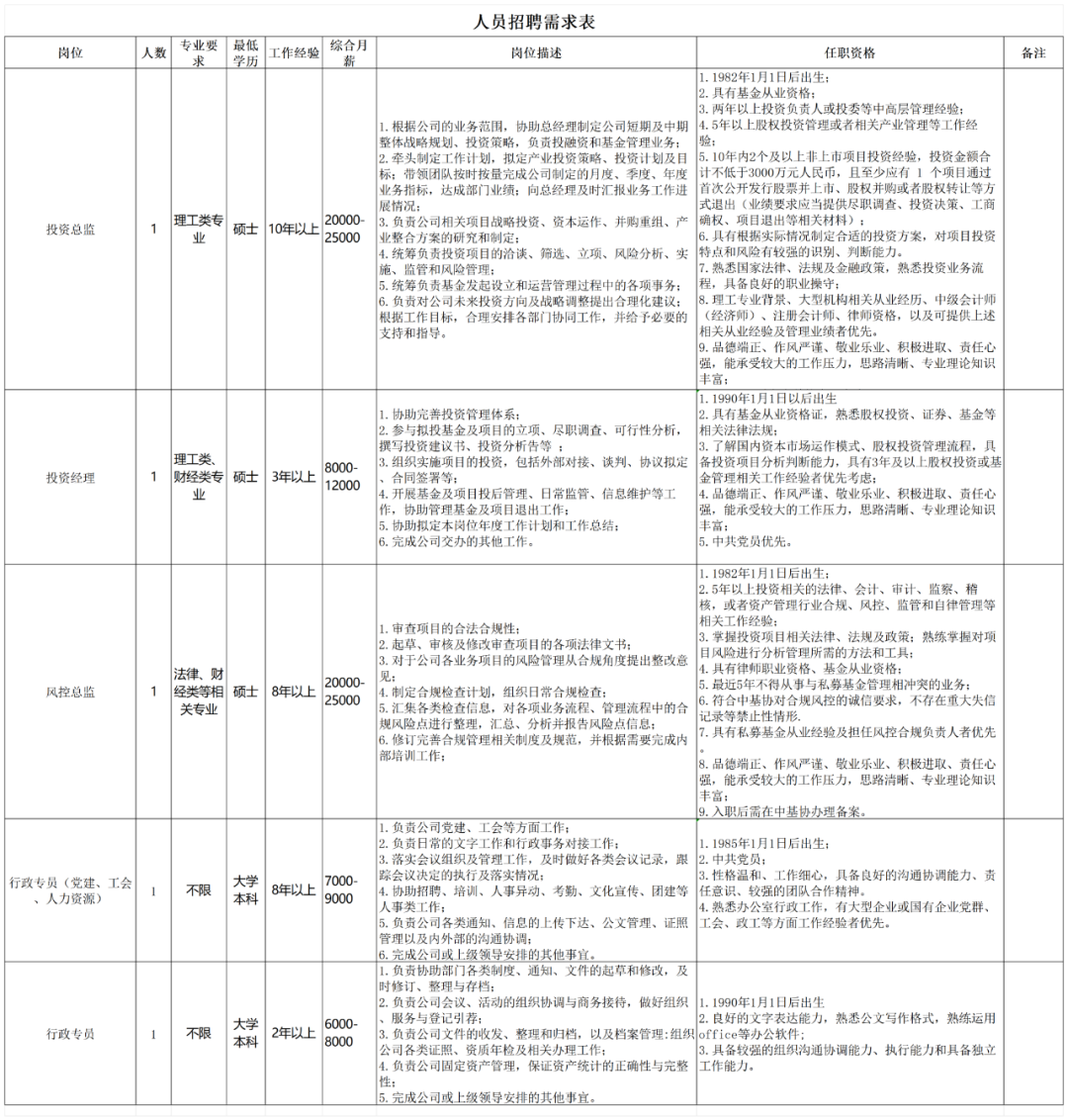 根据产投公司发展需要和人才需求,现面向社会公开招聘。