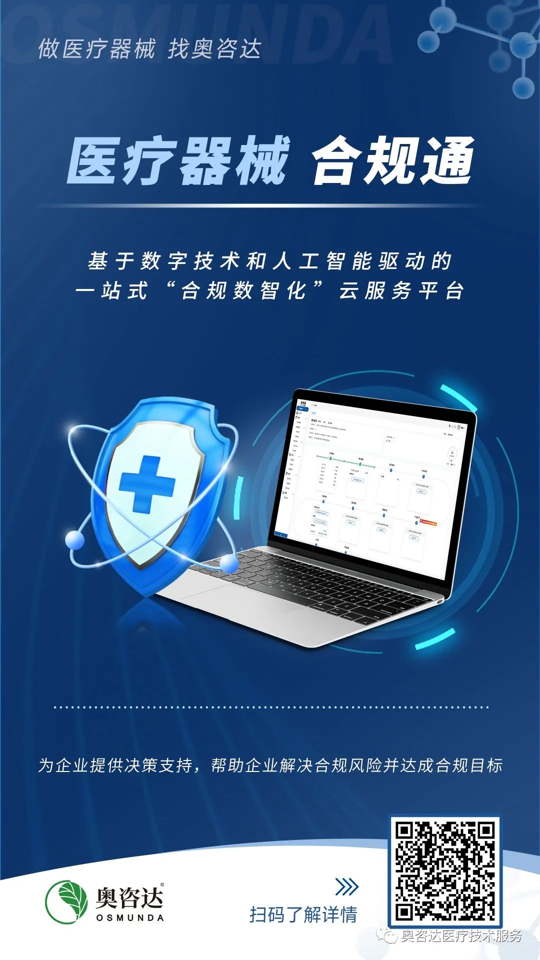 合规管理的重要性前所未有地凸显,然而日益严格和错综复杂的合规要求却让企业倍感挑战。别担心!为解决这些合规问题,奥咨达隆重推出“合规通”,助您迎难而上,提供医疗器械全生命周期一站式合规解决方案,让您从容应对合规挑战,规避风险,实现合规目标。