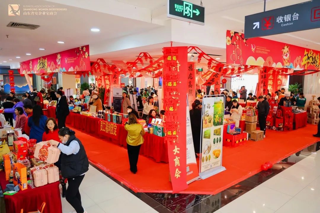 1月6日,山东省女企业家商会年货大集在济南市富雅家居二楼拉开帷幕。本次“女商会年货大集”人气火爆,共有近60个展位,百余种商品,商会姐妹及市民纷纷到现场打卡。年货大集现场人头攒动、市民竞相抢购,部分爆款商品被抢购一空。