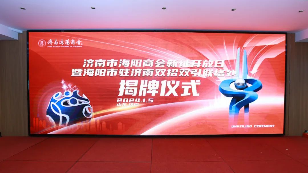 2024年1月5日上午,济南市海阳商会新址开放日暨海阳市驻济南双招双引联络处揭牌仪式在济南举行。济南市工商联组织建设处处长张攀峰,海阳市委常委、组织部部长杨涛出席并讲话。济南市及海阳市相关部门领导、省市级行业协会负责人及海阳籍商界人士等40余人共同参加了本次活动。济南市工商联净水行业协会党支部书记李毅代表本会参加仪式。