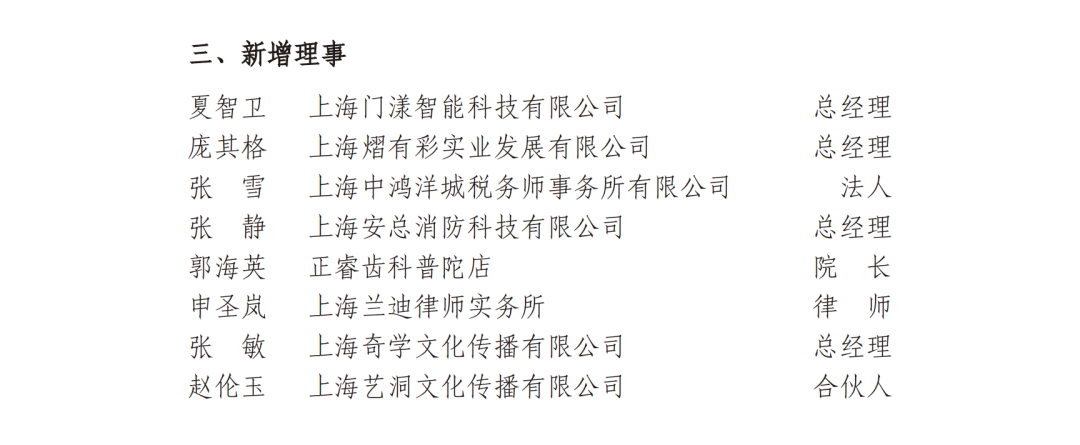 新增补常务副会长、副会长、理事名单
