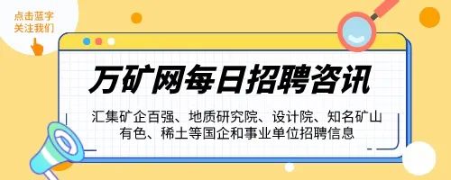 点击关注公众号,每日为您推荐矿企百强、国企央企、地质研究院等事业单位招聘公告。关注别别错过,捡漏好工作!