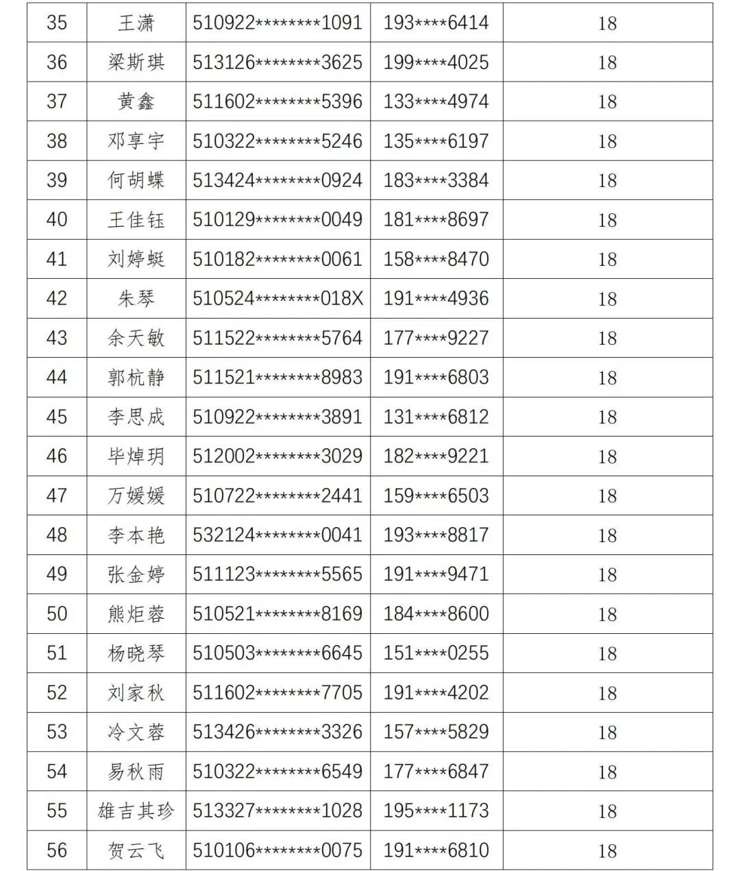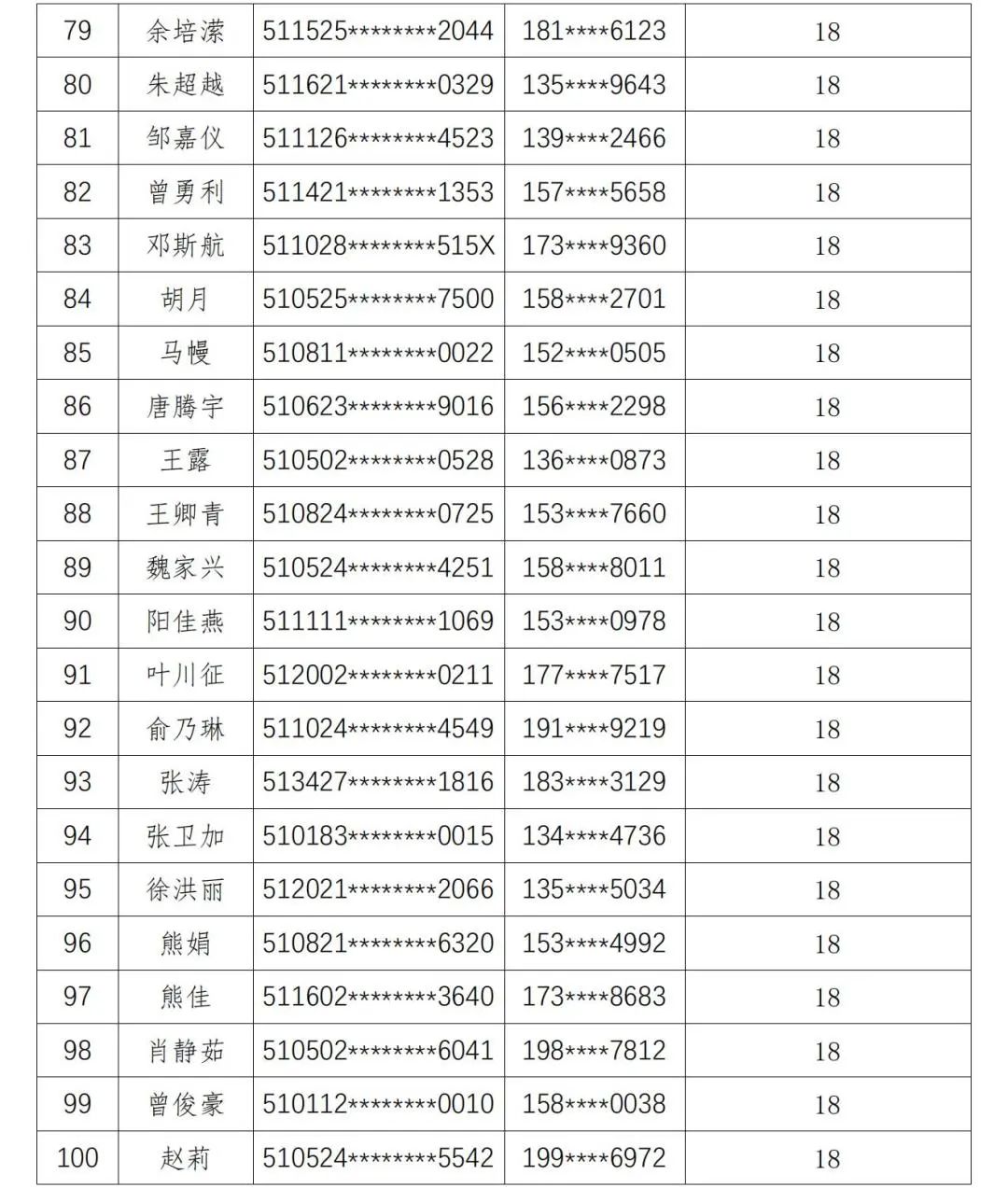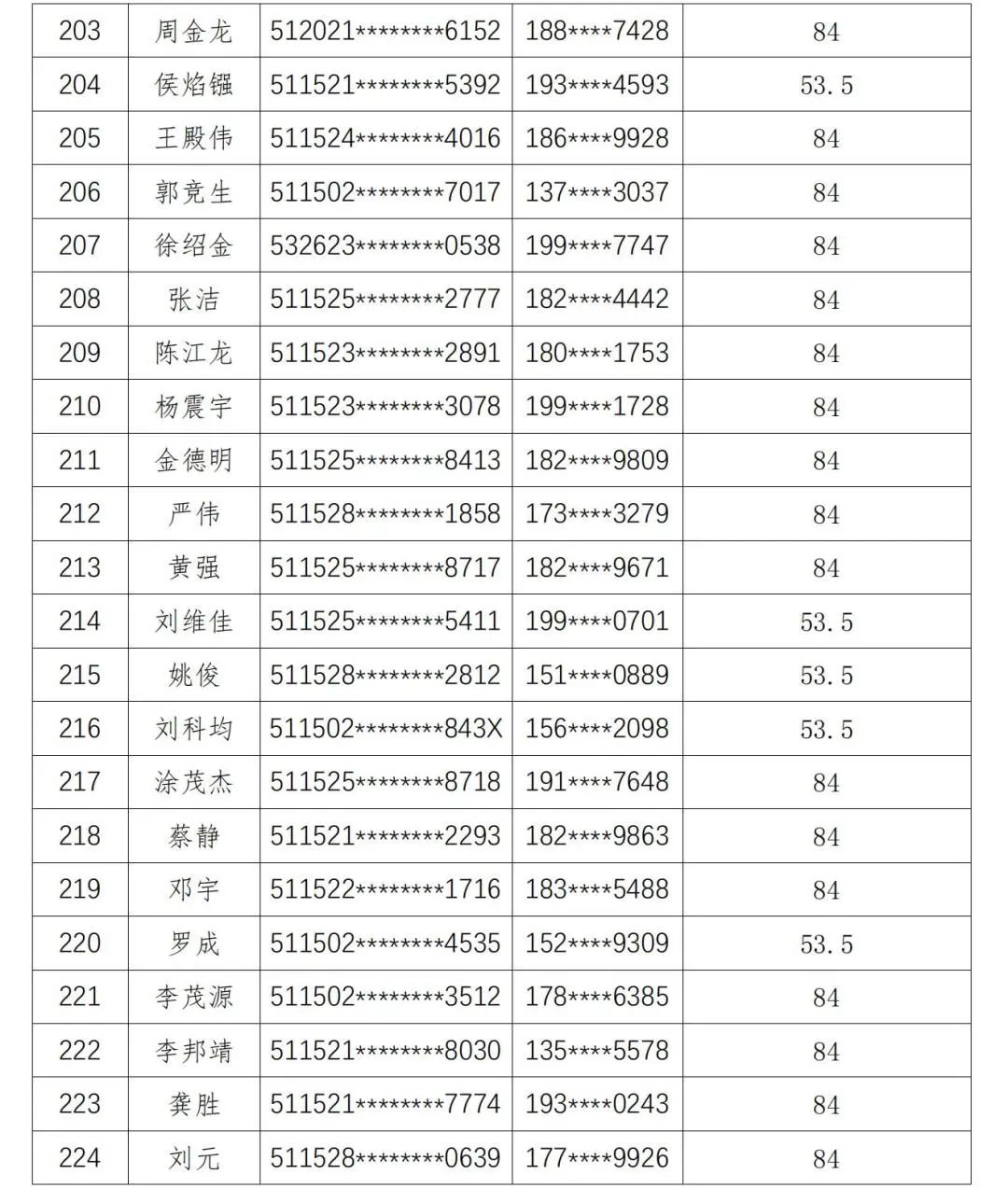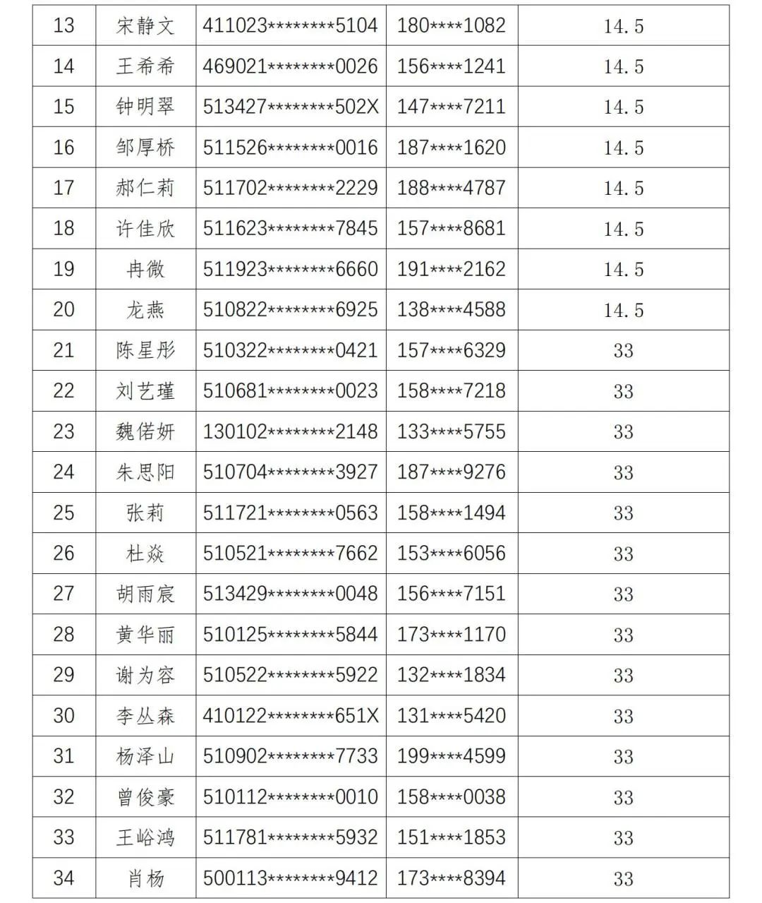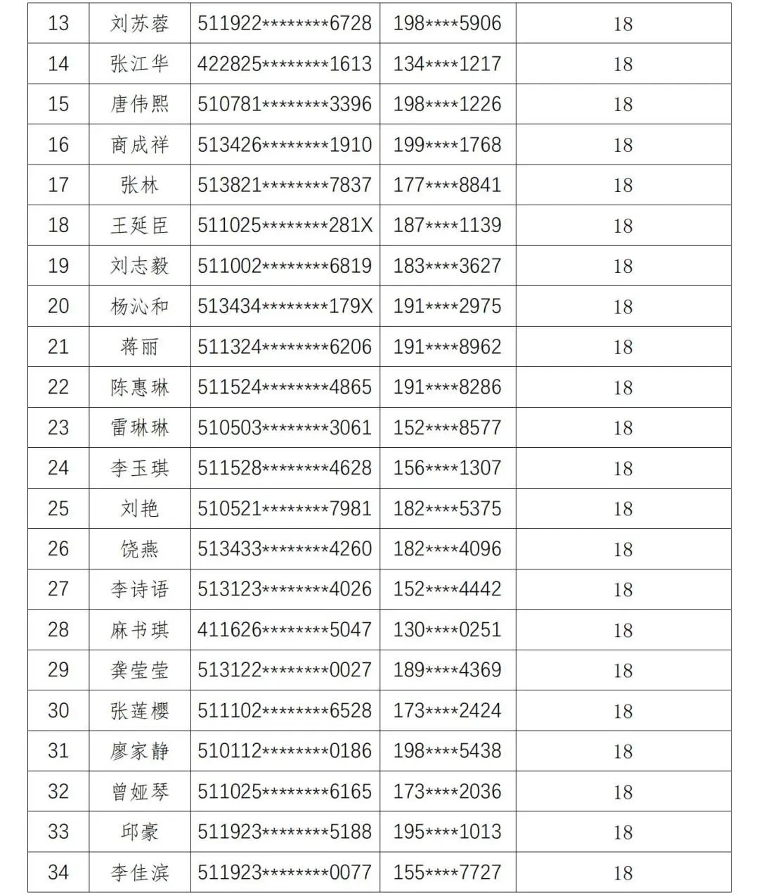 现将人员名单公示如下: