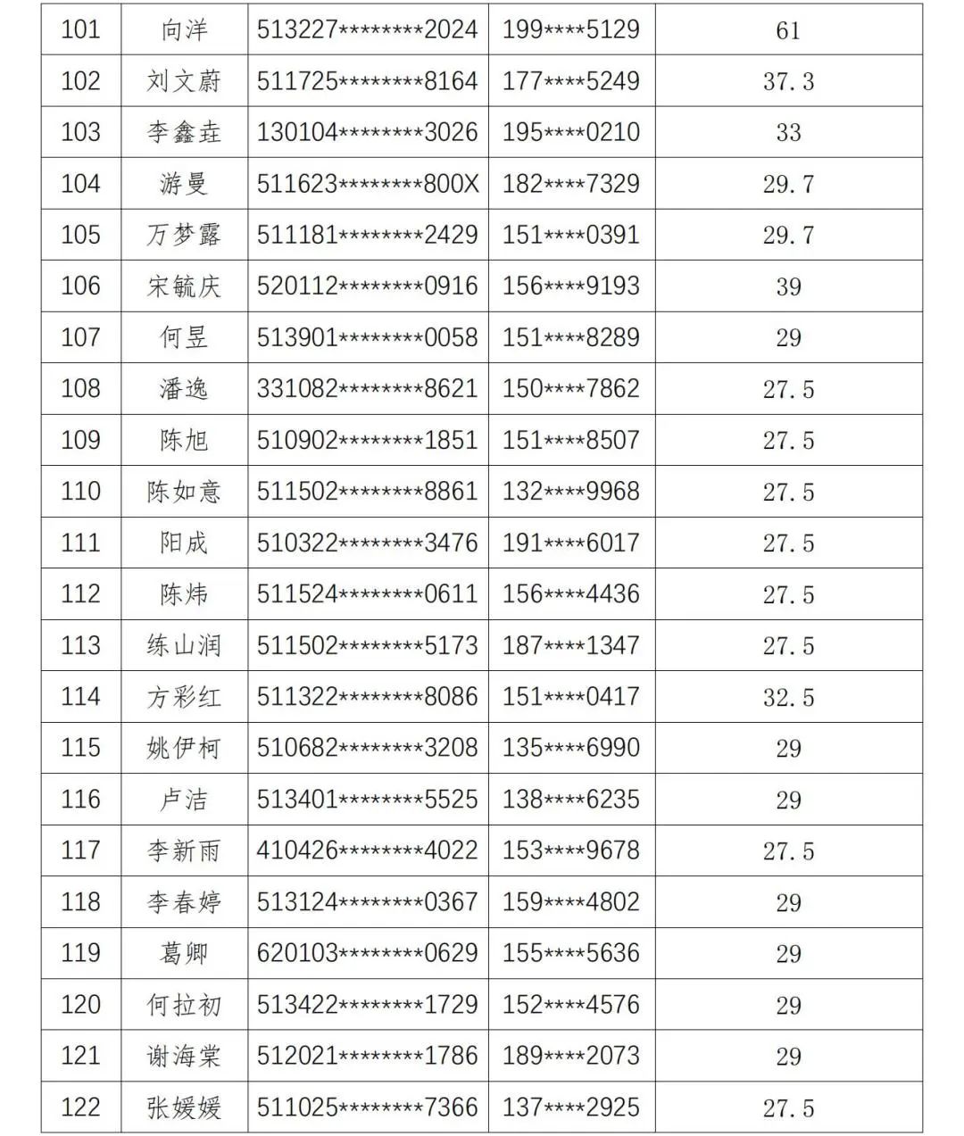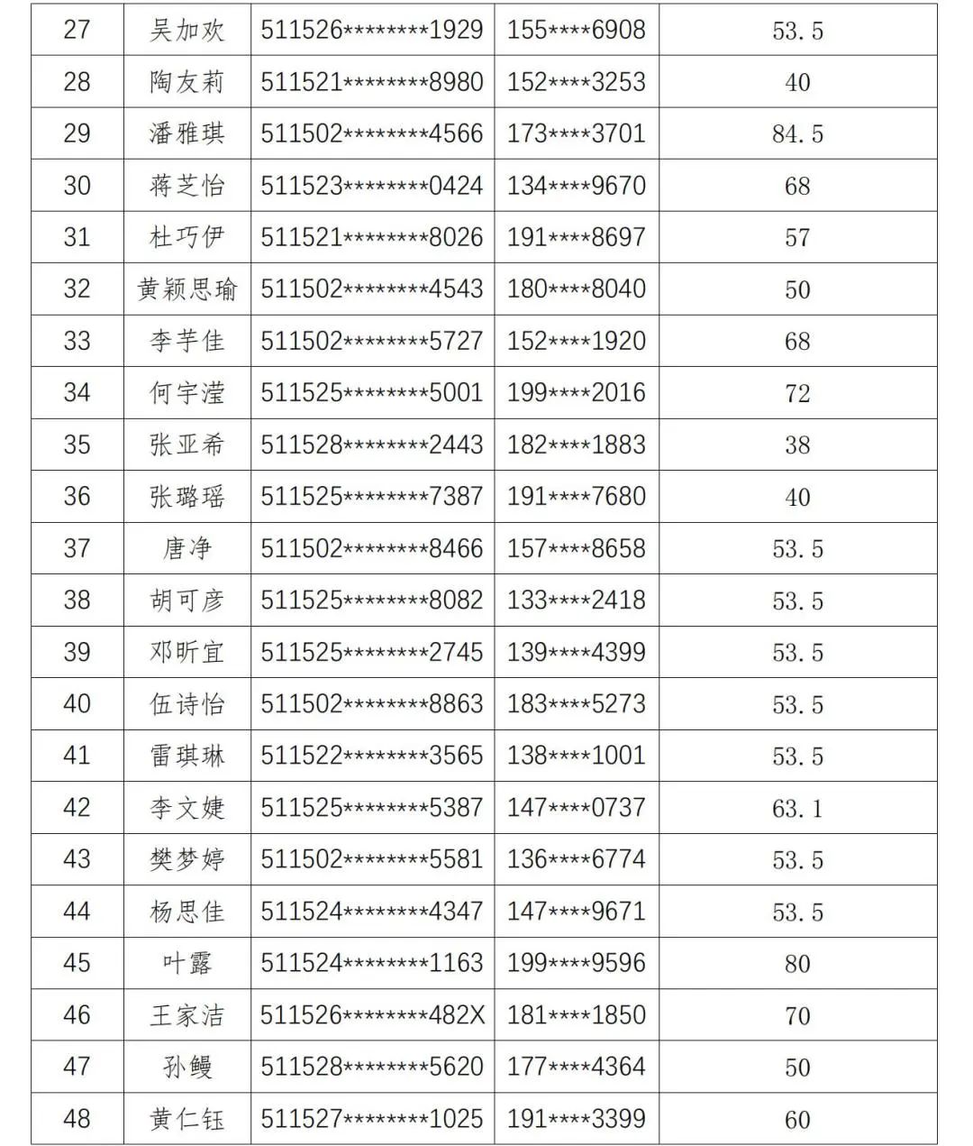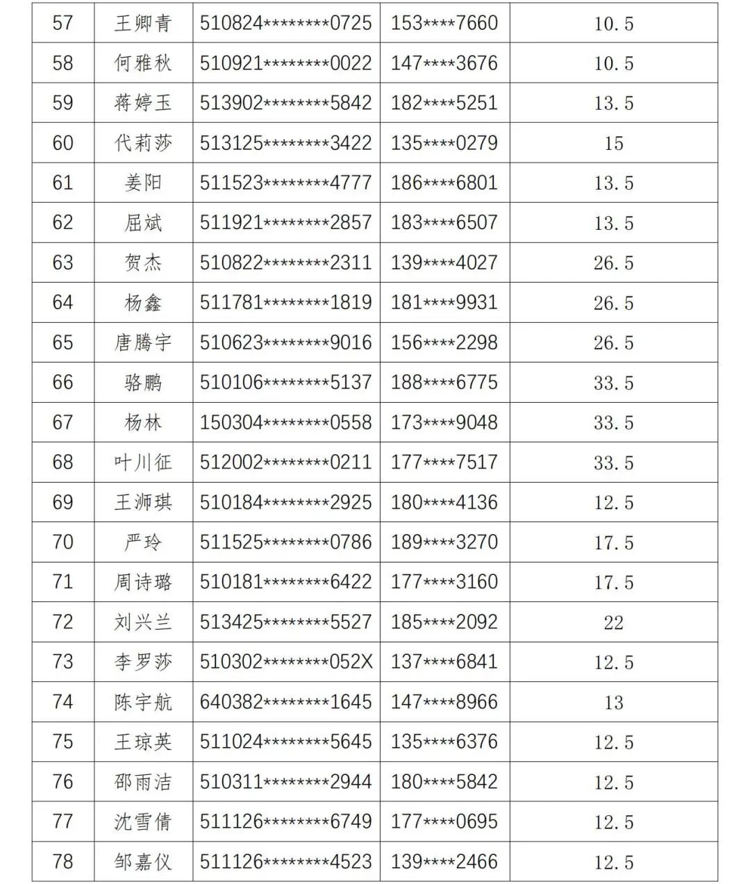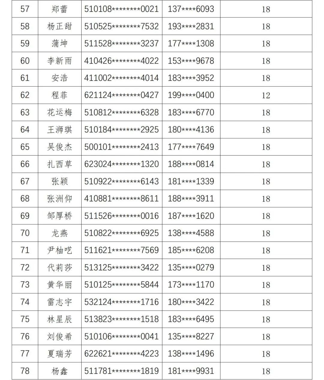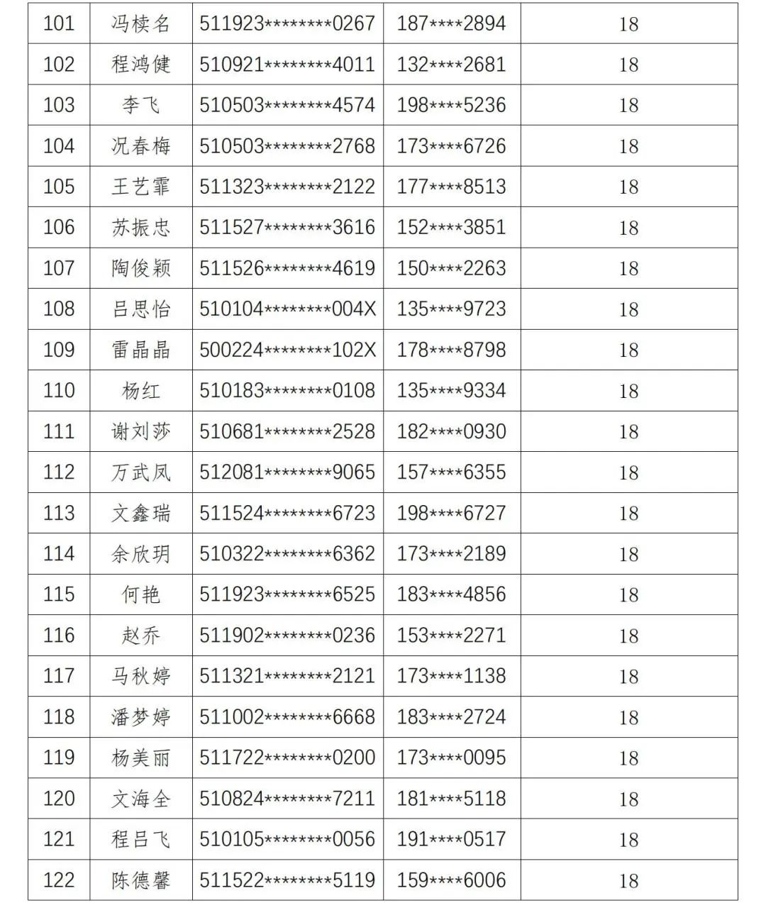 现将人员名单公示如下: