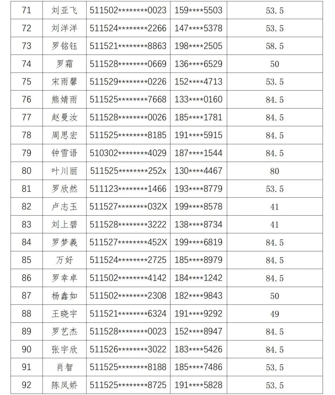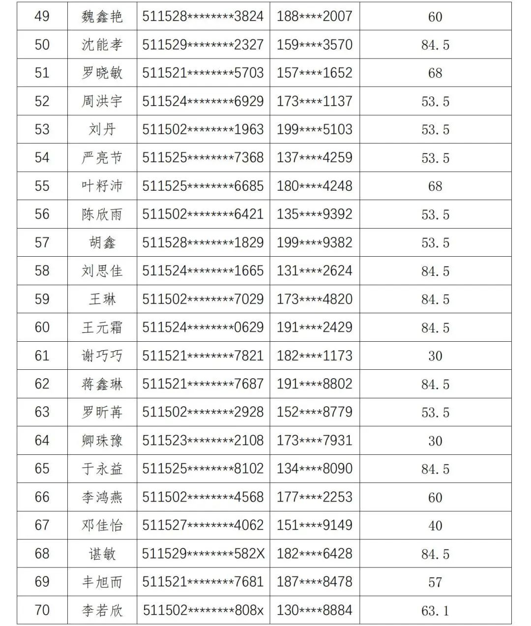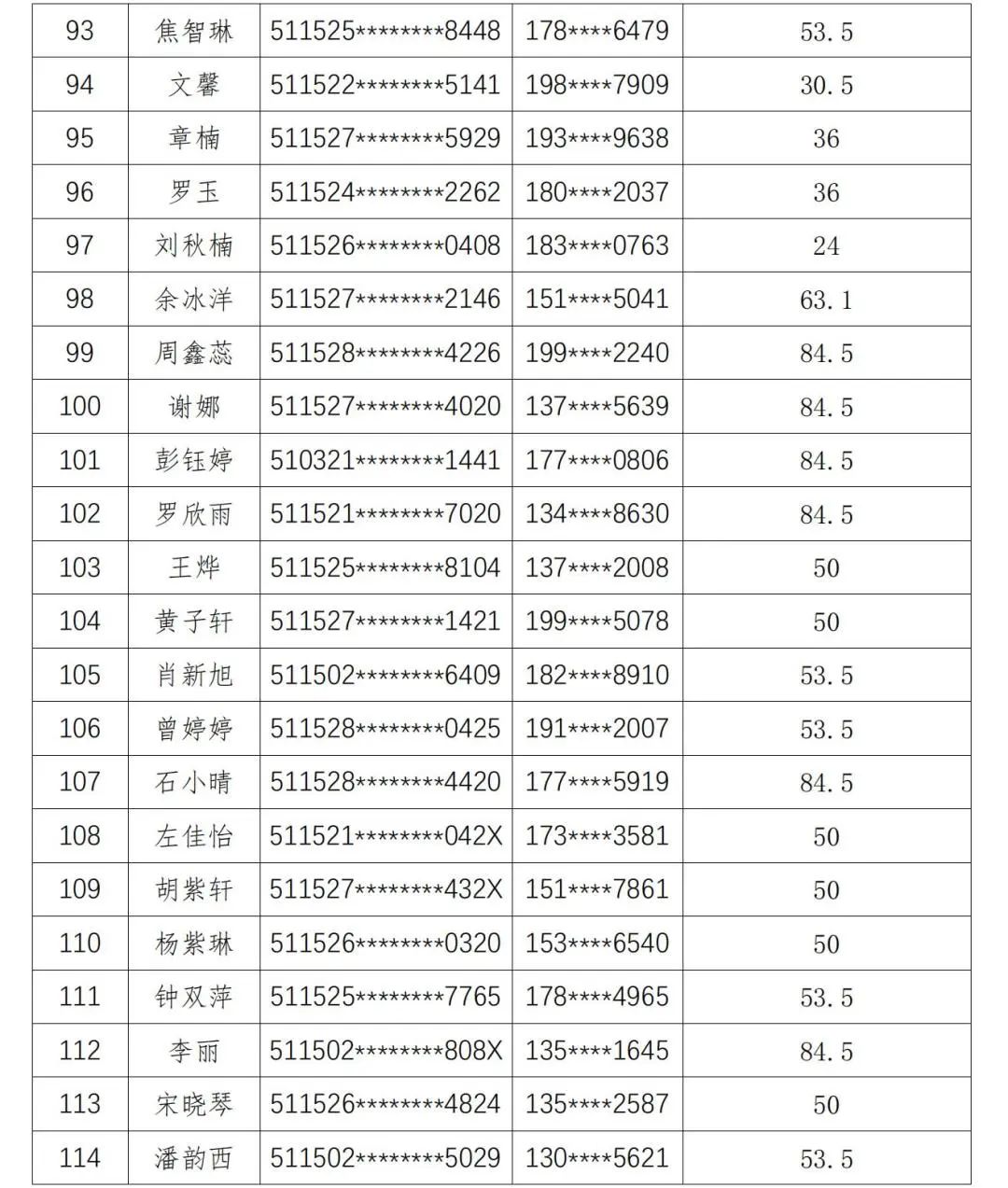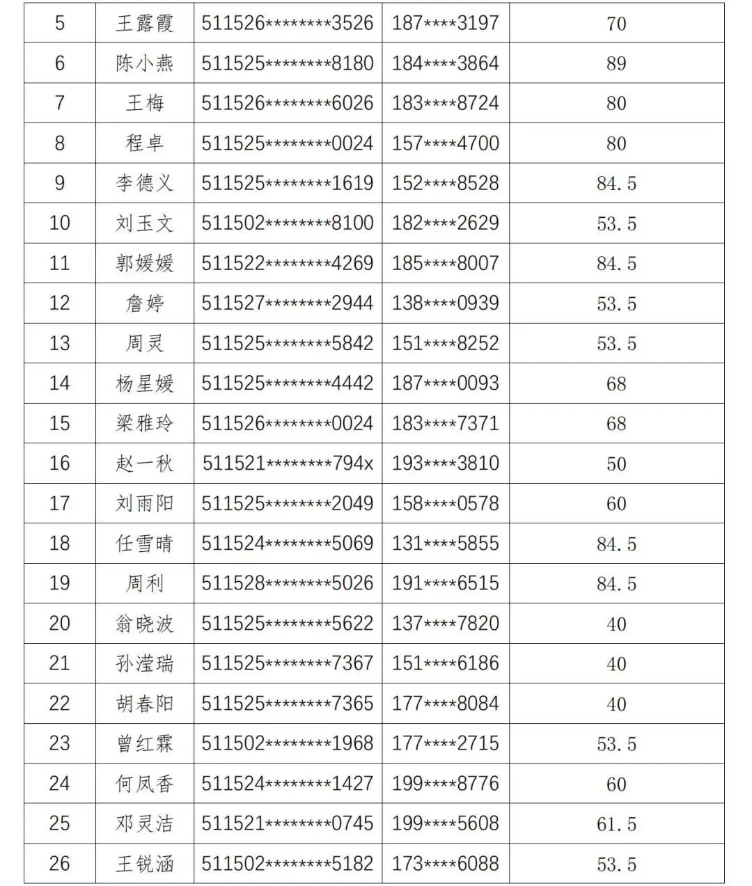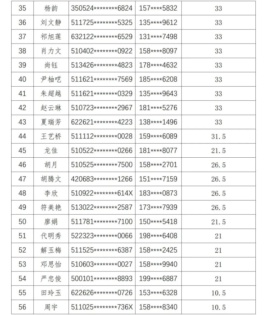现将人员名单公示如下:
