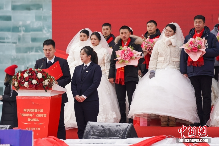 哈尔滨国际冰雪节系列活动之一的哈尔滨第四十届公益冰雪集体婚礼在哈尔滨冰雪大世界和太阳岛雪博会隆重举行。哈尔滨新区公证处公证员为来自河北、山东、四川、安徽、贵州、江苏、重庆等15个省、自治区和直辖市的35对新人现场“证婚”。