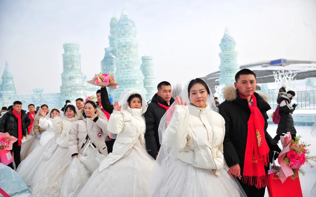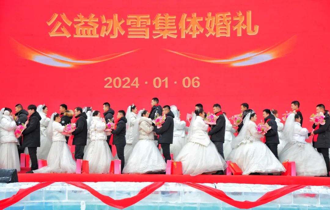 举办公益冰雪集体婚礼