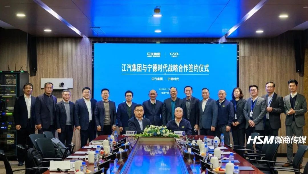 1月6日,江汽集团与宁德时代在福建宁德签署战略合作协议。江汽集团控股公司党委书记、董事长、总经理项兴初,宁德时代董事长、总经理曾毓群等相关领导出席。江汽集团股份公司总经理李明与宁德时代市场体系联席总裁韩伟代表双方签约。