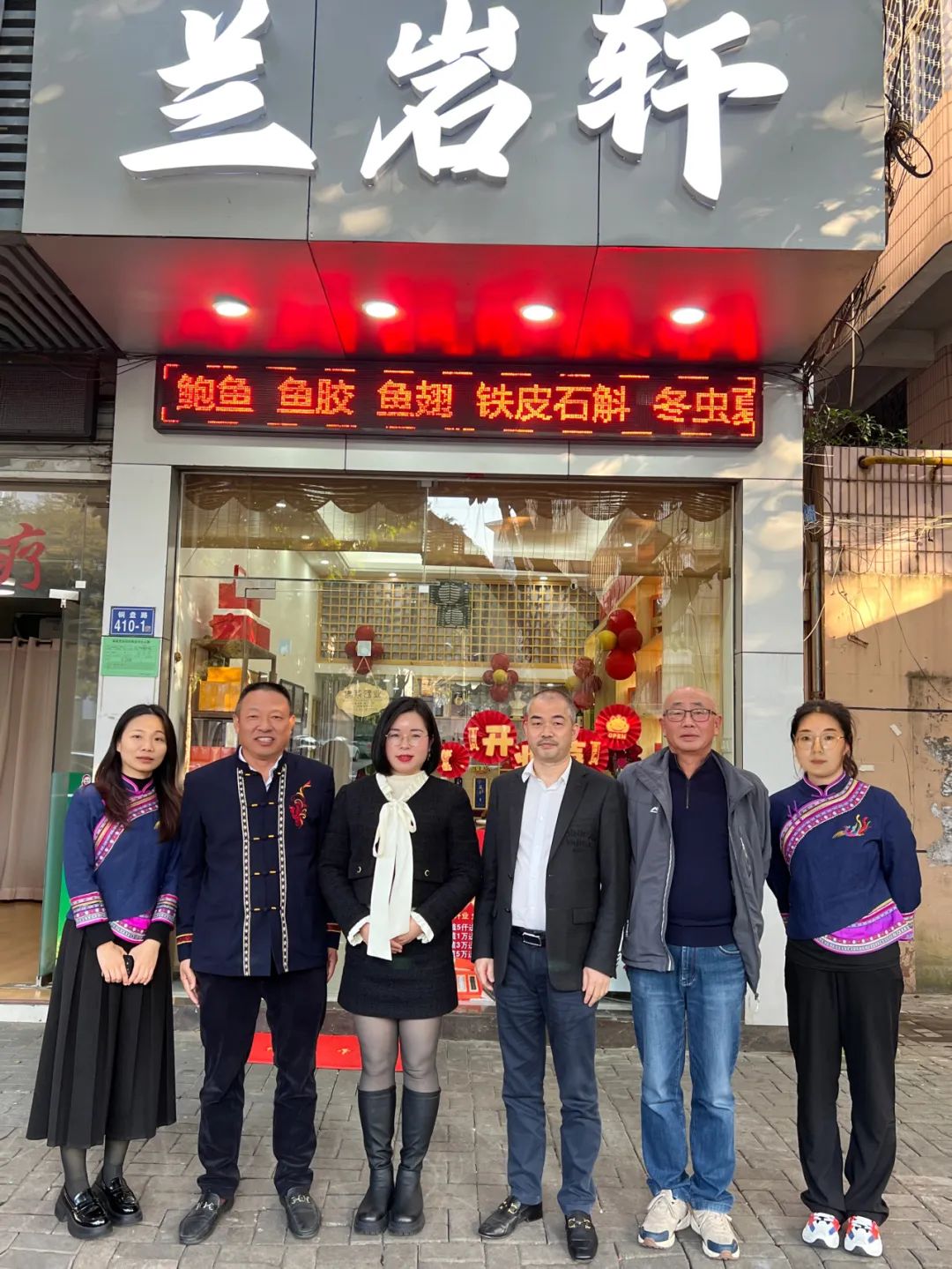 求新求变,是企业长久发展之道,也是畲家商会广大会员企业奋进的缩影。本次走访的企业为商会副秘书长兰穗仙在福州新开的分店——兰岩轩,于2023年12月30日正式开业。据了解,兰穗仙于2016年创办了福建畲蓝贸易有限公司,切入海洋产业赛道,以霞浦畲族特色海鲜品类为主营业务,旗下的畲家金凤凰醇香大黄鱼、畲家金凤凰酒糟大黄鱼两大特色渔类产品深受广大消费者喜爱,在2022中国(福州)国际渔业博览会被评为“金奖产品”。此次新开业的兰岩轩,正是兰穗仙在海洋产业之外的又一尝试,聚焦高端燕窝海参滋补品、名品酒茶等品类,以契合当下消费市场备受关注的健康概念。走访中,蓝天辉秘书长一行与兰穗仙就消费新趋势、品牌塑造等方面展开深入交流,共同探讨企业跨界经营的痛点与机遇。