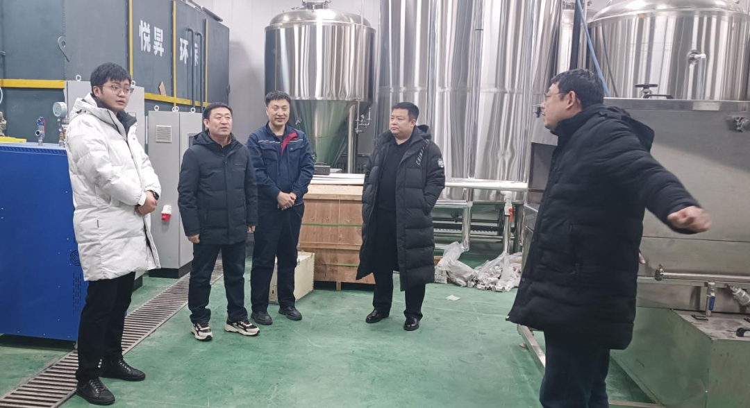 1月5日,市工商联邀请兴安盟酒类生产监管部门负责人来到印象阿尔山餐饮服务有限公司拟建的啤酒生产车间现场,就该公司啤酒生产设备安装、厂区规划、标准要求等问题实地进行了具体指导,为企业提供切实有效的服务,全力推进该公司啤酒生产许可证审批的进度,争取早日投产。市委常委、统战部长国庆全程陪同。