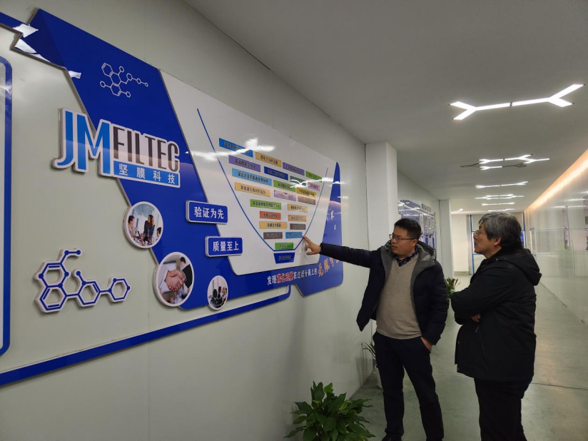 1月4日,中国环保机械行业协会秘书处为了解会员单位现状及需求,加强与会员单位的联络沟通,更好地为会员提供服务,申红杰副秘书长带队赴浙江坚膜科技有限公司走访座谈,浙江坚膜科技有限公司董事长张云飞、行政经理张珺、生产部经理何金坪及相关人员座谈交流,协会政策研究室主任张辰曲、行业发展部钟明明陪同出行。协会一行参观了浙江坚膜科技有限公司核心产品高纯度碳化硅陶瓷膜的生产车间,随后座谈中听取了单位的介绍及诉求,同时协会为企业介绍了专精特新、绿色工厂、首台套等相关政策介绍,并就专精特新“小巨人”等政策的申报材料编写提供辅导。浙江坚膜科技有限公司是我协会会员单位,同时也是2023年《国家鼓励发展的重大环保技术装备目录》技术支撑单位之一,是一家专业从事高纯度碳化硅陶瓷膜研发、生产及膜分离技术应用、工程设计的高新技术企业。公司通过中国科学院上海硅酸盐研究所、浙江大学和天津大学等高校联合开展膜材料和应用技术开发服务,成功研发高纯碳化硅膜制备技术,并获得发明专利。可广泛应用于饮用水净化、工业水处理、工业提纯、过滤、纯化、浓缩等。是全球陶瓷膜领域知名制造商。通过走访交流,协会秘书处深入了解企业的经营状况、发展需求、面临的问题等,从而有针对性地提供相应的服务和支持,为会员企业提供切实有效的帮助。企业走访系列活动将持续进行,欢迎有需求单位与我协会联系