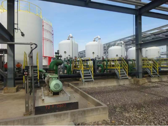 EBSM污染凝液预处理设施将换热降温后的污染凝液送入气水混合器后,充入压缩空气提高水中的溶解氧,通过除铁器将Fe2+氧化成Fe3+,然后经升压依次经过表面过滤器、活性炭过滤器、精密过滤器处理后送循环水场作为循环水进行回用,2021年污染凝液回用量达20.03万立方米。