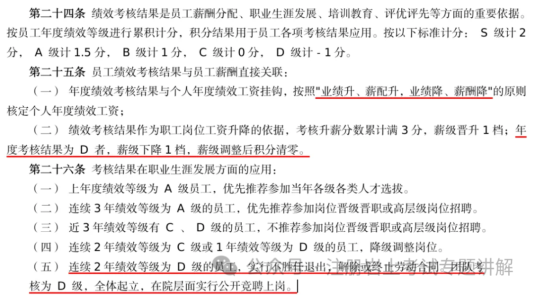 某综甲设计院也推出了末尾淘汰,利用积分等级制度,每个等级有对应的积分。连续两年D级员工,解除合同,团队考核D级,全体解散竞聘。当然积分高的员工,也有加薪升职机制。连续3年绩效等级为A级的员工,优先推荐参加岗位晋级晋职或高层级岗位招聘。这波操作还好,目前大部分设计院都在实行这种考核制度。