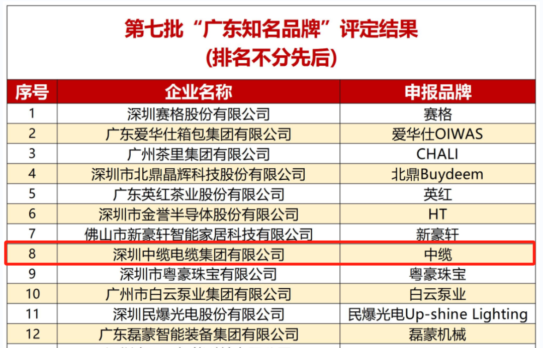 第七批广东知名品牌评价自 2023 年 9 月启动以来,众多具有高知名度、美誉度、联想度、忠诚度和资产价值的品牌积极参与评选。经过广东知名品牌评价专业委员会的多轮严格评审,2024年1月1日,第七批“广东知名品牌”获评名单正式向社会公示,“中缆”成功入选。