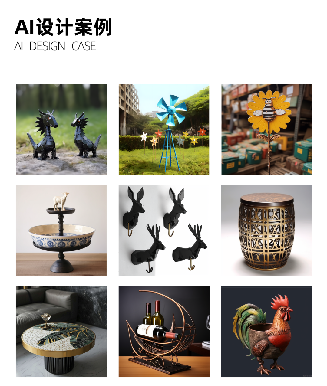 2023年12月,研究院AI设计团队来到福建省安溪世纪工艺品有限公司,与企业负责人叶朝娥总经理参观展厅,针对于企业主要市场方向,壁挂、滴水器、鸟窝等方向,进行了创新设计的探讨,研究院安排专门的设计师定向为其生成AI设计图,陆续输出图纸供起选择生产。