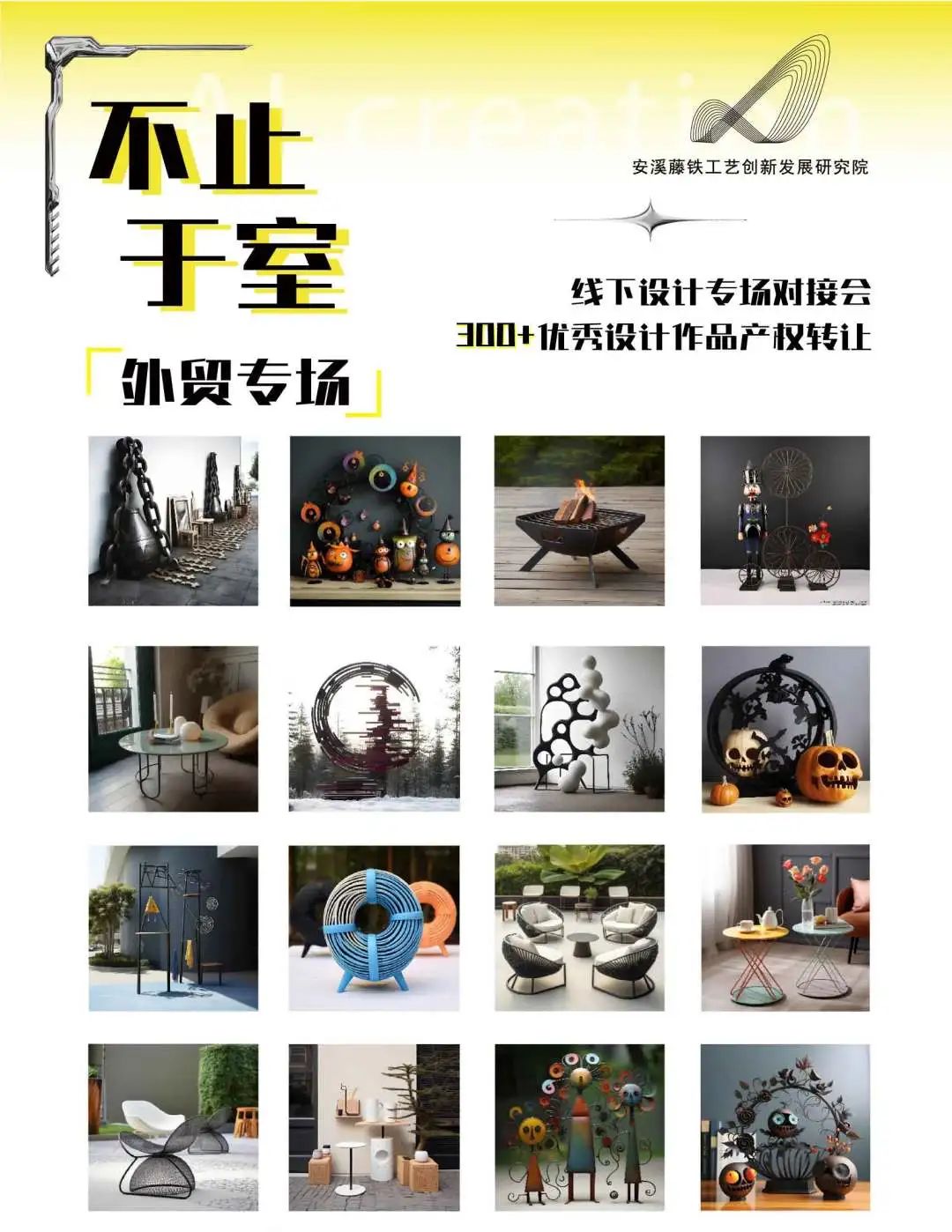 为深层服务安溪藤铁工艺产业创新发展。研究院特推出“AI设计助力企业2024春交会抢订单计划”,瞄准2024年春季交会市场,由研究院专业、设计团队深入企业,精准洞察创新需求,为企业提供定制设计服务,致力于助力企业“抢订单、拓市场”!