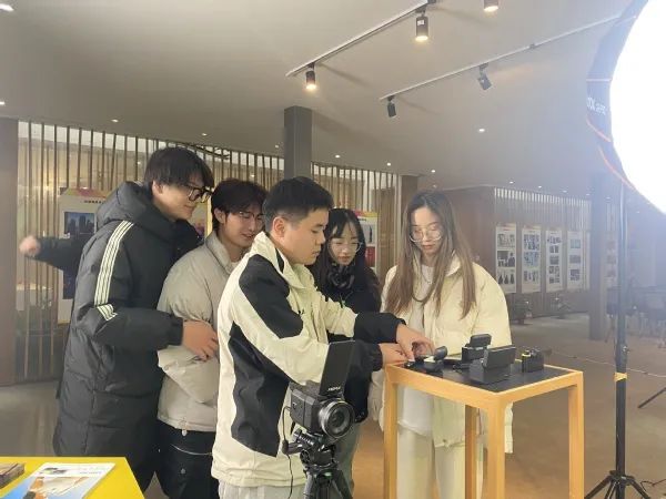 讲座中,企业专家展示了各类专业设备和数字影棚,吸引了现场师生参与交流。数字媒体艺术专业学生在企业技术专家指导下,了解了现场灯光布置、直播相机使用、直播麦克风的无线操控等技术和相关知识,展厅现场瞬间变成了一堂生动有趣的专业微课堂。