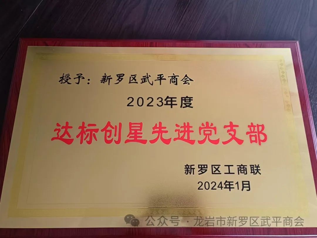 新罗区工商联授予商会2023年度“达标创星”先进党支部荣誉称号。