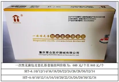 3、一次性无菌包皮套扎器套装 产品注册号:渝械注准20222020052