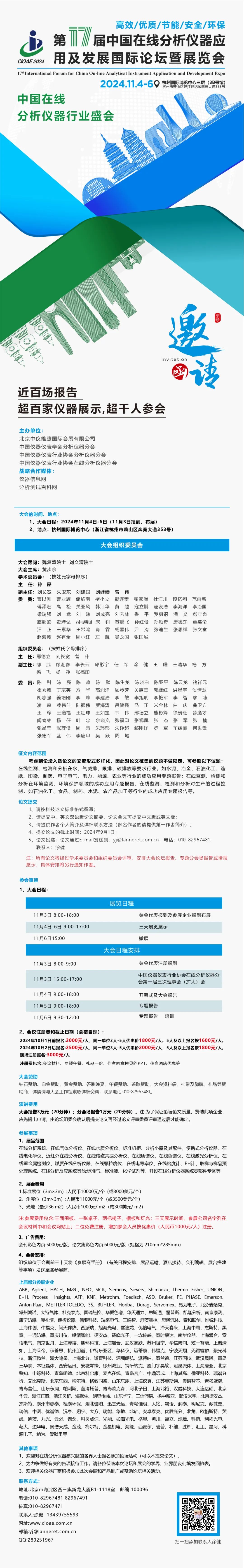 招商启动 | 第十七届中国在线分析仪器行业盛会11月与您相约最美杭州!