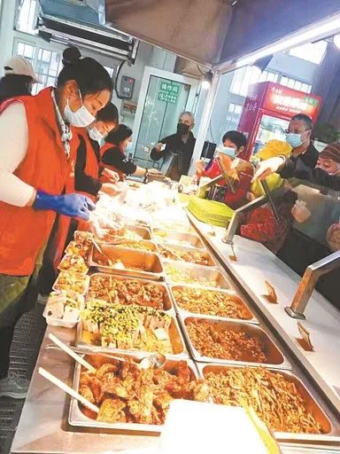 ▲武汉市武昌区水果湖街道东亭社区幸福食堂为老年人提供丰富多样、价格实惠的菜品,深受老年人欢迎。