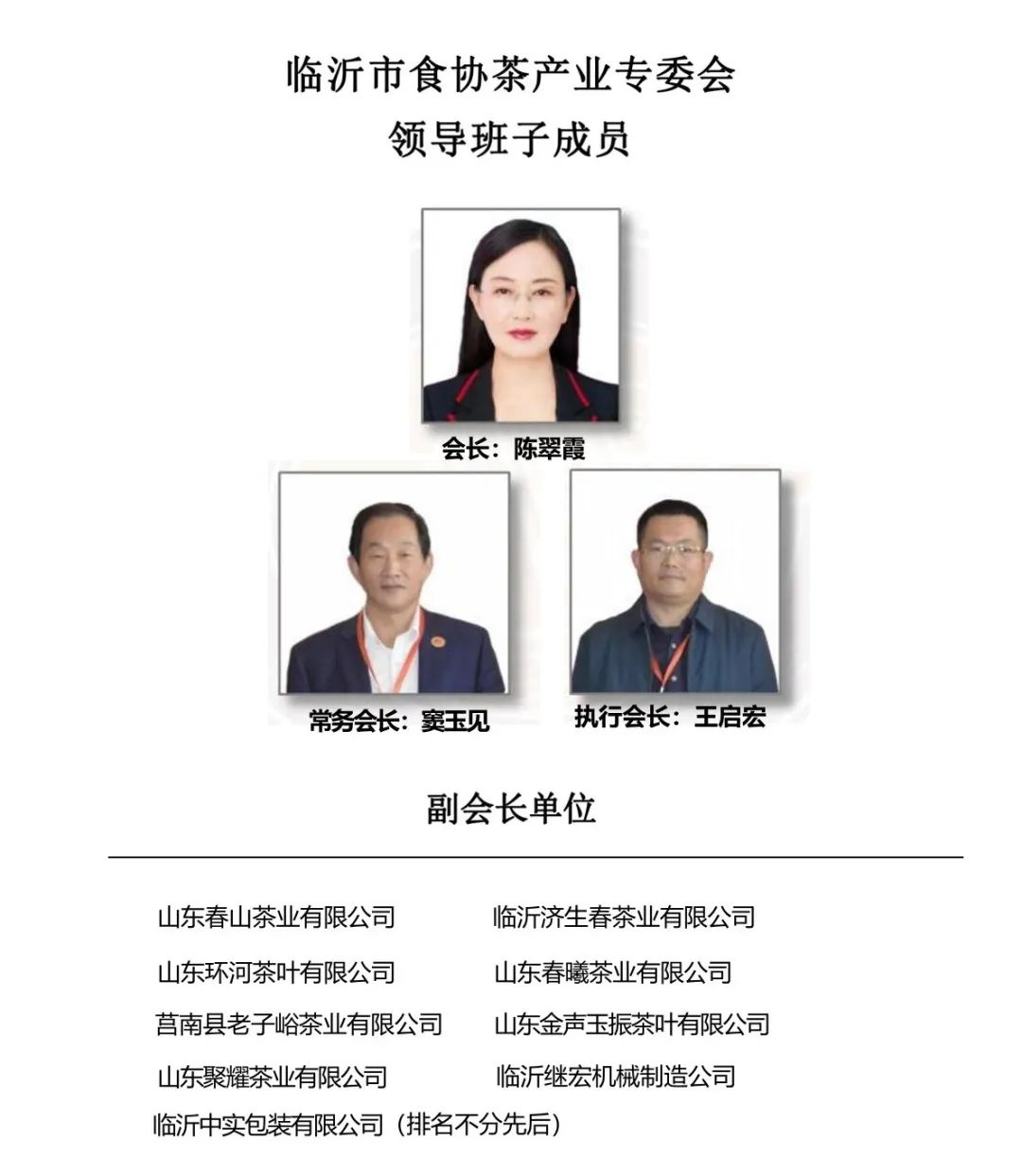 为使临沂市茶产业经营企业由分散的单兵作战走向抱团发展、团结共赢,2020年10月30日上午,临沂市食品工业协会茶产业专业委员会成立大会在“南茶北引”主产区——莒南县隆重举行。临沂市豌青茶业有限公司董事长陈翠霞当选为临沂市食品工业协会茶产业专业委员会会长、临沂雪尖茶业有限公司董事长王启宏为执行会长、鲁南国际茶博城董事长窦玉见为常务会长,中国食品报《食安视窗》执行主编张传涛为秘书长。