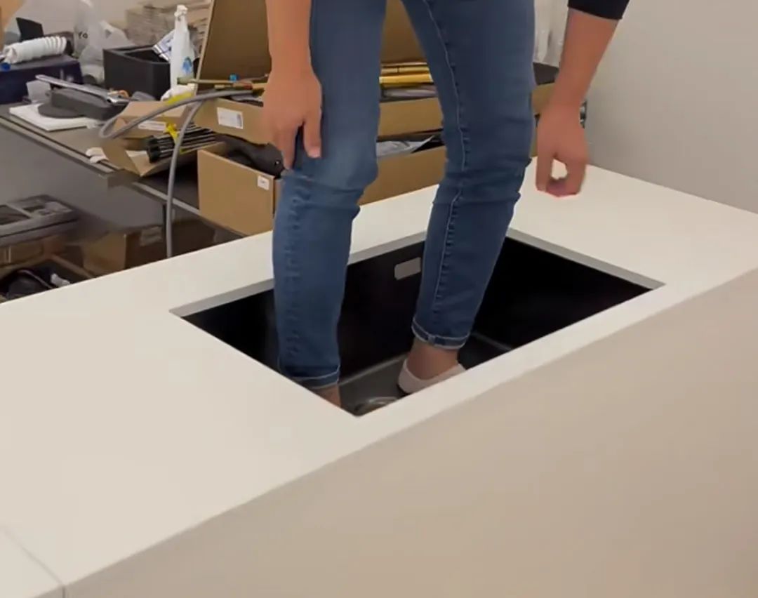 台下盆可以达到基本需求,不过很多粉丝又担心台下盆的承重问题,目前都是采用卡扣固定+结构胶的处理方式,之前尝试过大汉踩进去也没事,可见是足够牢固的。