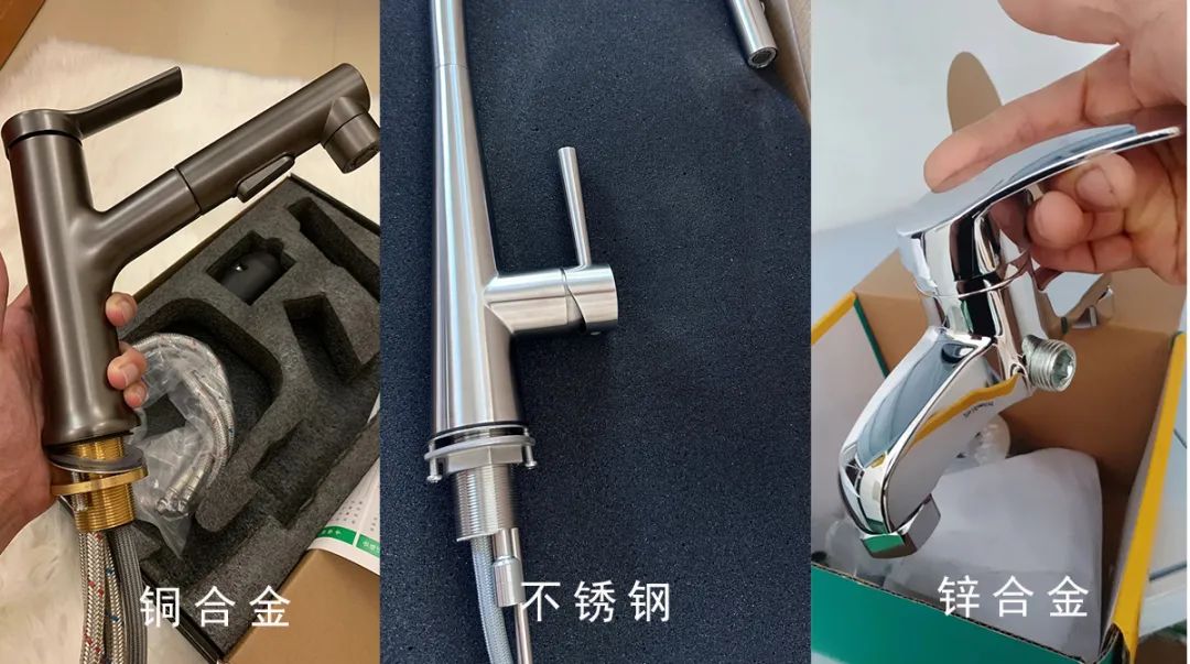 对比来看,锌合金价格低,但年久容易被腐蚀,为了身体健康不建议选购。大多数家庭会选择不锈钢的水龙头,它的性价比最高,但是要注意认准sus304不锈钢,不然用不了多久就会生锈。