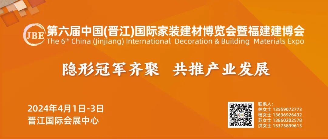 第六届中国(晋江)国际家装建材博览会暨福建建博会将于2024年4月1-3日在晋江国际会展中心隆重举办,同期举办福建家居五金制品展、福建古建筑展。展会规模盛大、特色鲜明,融合行业渠道及采购商,是国内外线下建装行业招商合作优选平台!