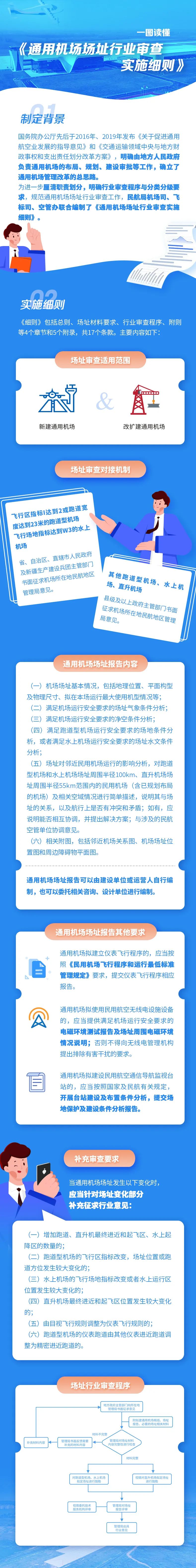 日前,民航局发布《通用机场场址行业审查实施细则》(以下简称《细则》),旨在厘清民航管理机关、地方政府在通用机场场址审查工作中的职责划分,规范场址审查程序和要求,进一步做好通用机场场址行业审查实施工作。《细则》自发布之日起实施。