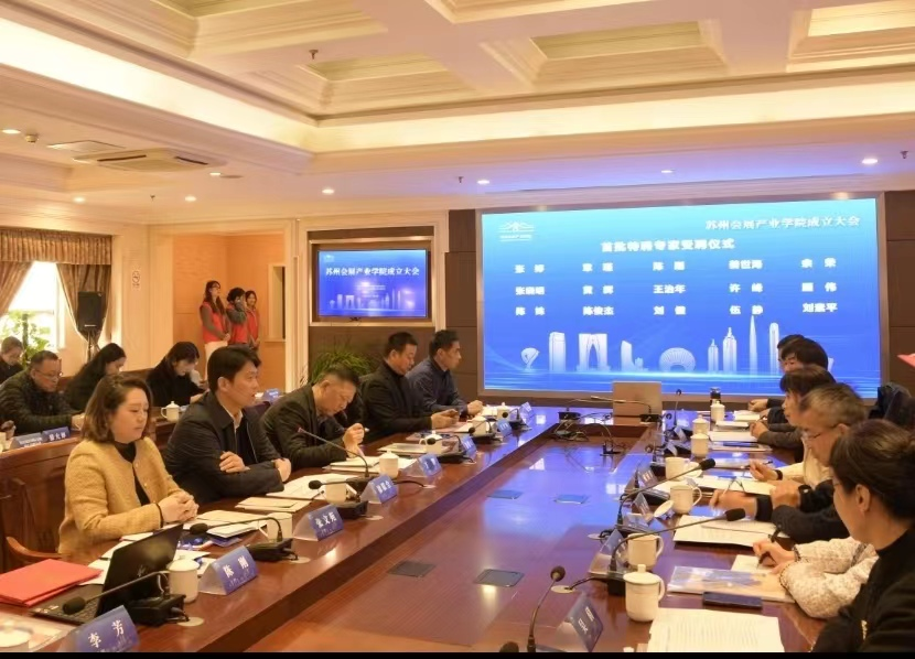 成立大会前,苏州会展产业学院召开了第一次理事会会议。审议通过了选理事长单位、副理事长单位及理事单位,并选聘了首批特聘专家。