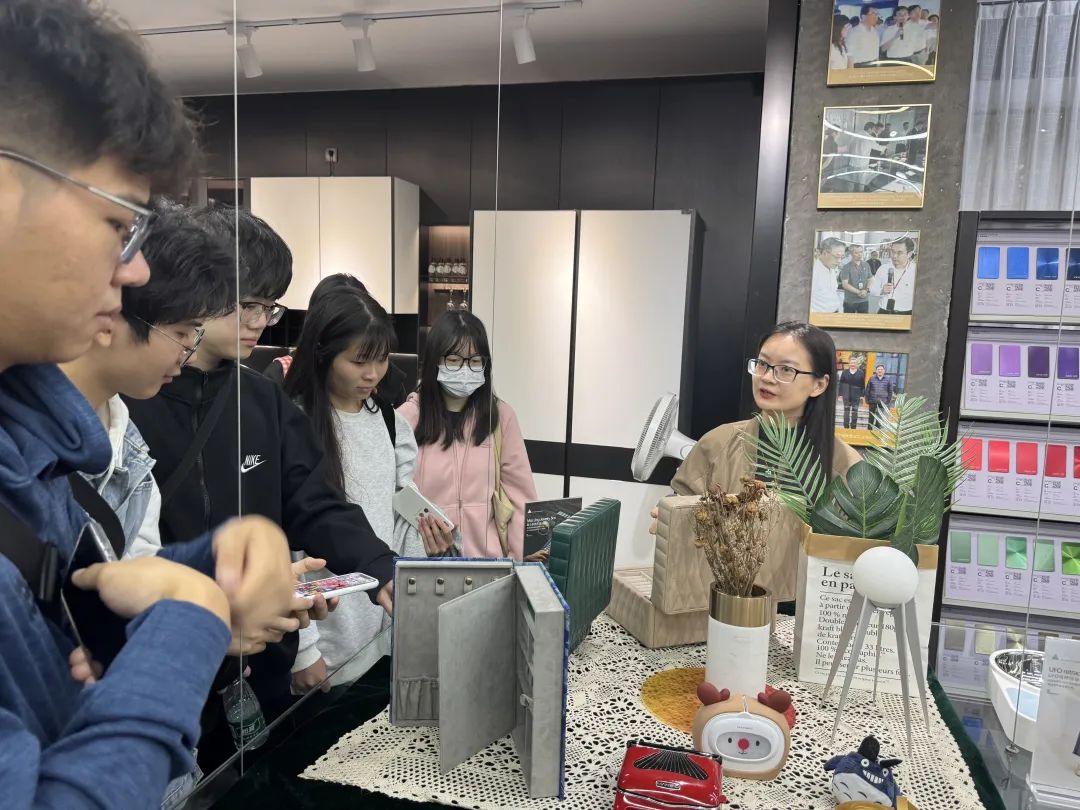 为了加强我院学生对企业专题设计课程的了解,提高学生的实践能力和激发学生的学习热情,于2023年11月16日,创意与设计学院商品设计系2020级产品设计专业学生在毛玮婧老师的带领下,与学院院长助理黄功翔老师一同前往国家高新技术企业,新锐设计领军企业—深圳佳简几何工业设计有限公司、中国工业设计十佳设计服务机构—深圳浪尖设计集团有限公司、深圳创新材料馆开展《企业专题设计》课程实践调研活动。