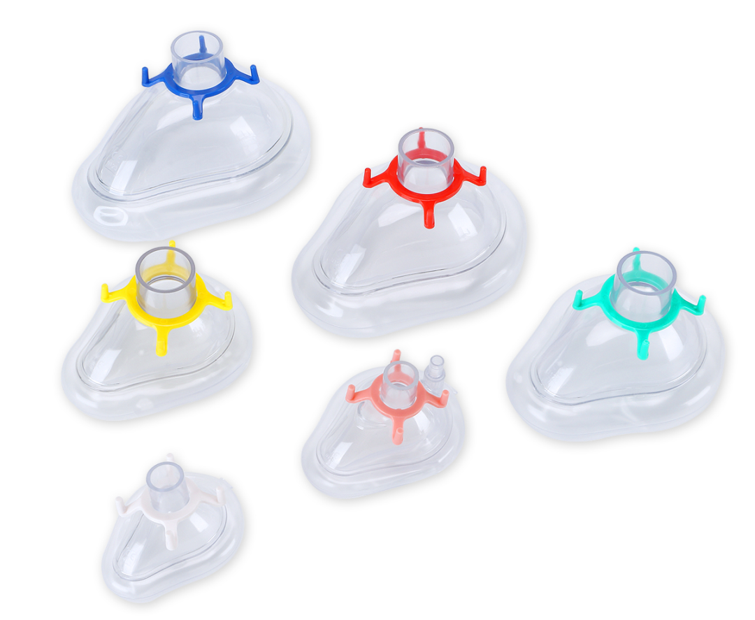 一次性使用麻醉面罩是治疗呼吸衰竭病人时所用机械呼吸装置的配套部件,临床上作为医疗单位临床连接呼吸管路实行麻醉气体输送,供病人吸入麻醉气 体时一次性使用合理的曲线设计,符合国人脸型,密封效果更好;气垫阀门可改 变气垫压力,便于快速调整;材质透明,便于医护人员及早发现呕吐现象。