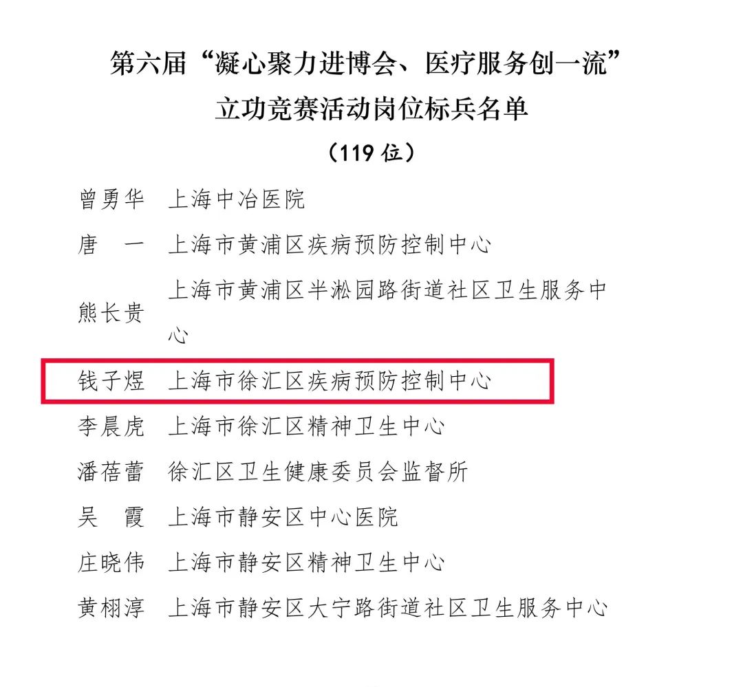 本次活动共有82个团队(班组)荣获“第六届‘凝心聚力进博会、医疗服务创一流’立功竞赛优秀团队(班组)”,119位个人荣获“第六届‘凝心聚力进博会、医疗服务创一流’立功竞赛岗位标兵”。
