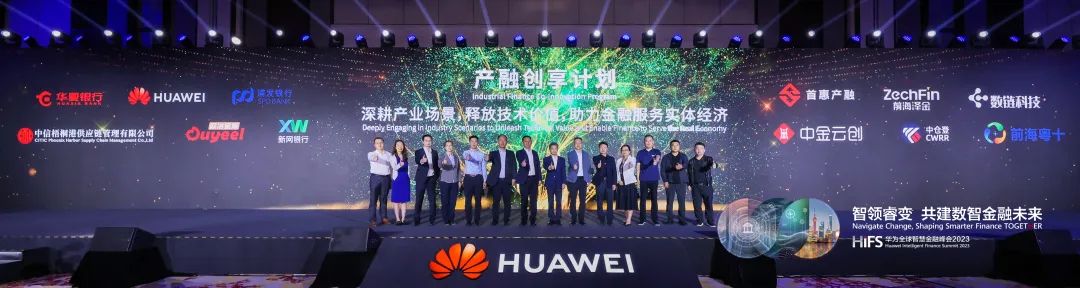 这些创新实践,既有商业价值,也有社会意义。我们深知产业数字金融这项事业,无法由单一机构完成的,而是需要动产融资各参与方共同合作构建。因此,我们在2023年6月华为全球智慧金融峰会期间,协同客户、产业方、科技伙伴等13家初创成员发布了“产融创享计划”。面向产业数字化浪潮,产融创享计划期望携手更多同行者,共建产业金融创新分享平台,共享业务经验和技术创新能力,深入场景,合力构建行业领先解决方案,推进产融技术和模式创新,构建产业数字金融生态,加速金融服务实体经济。