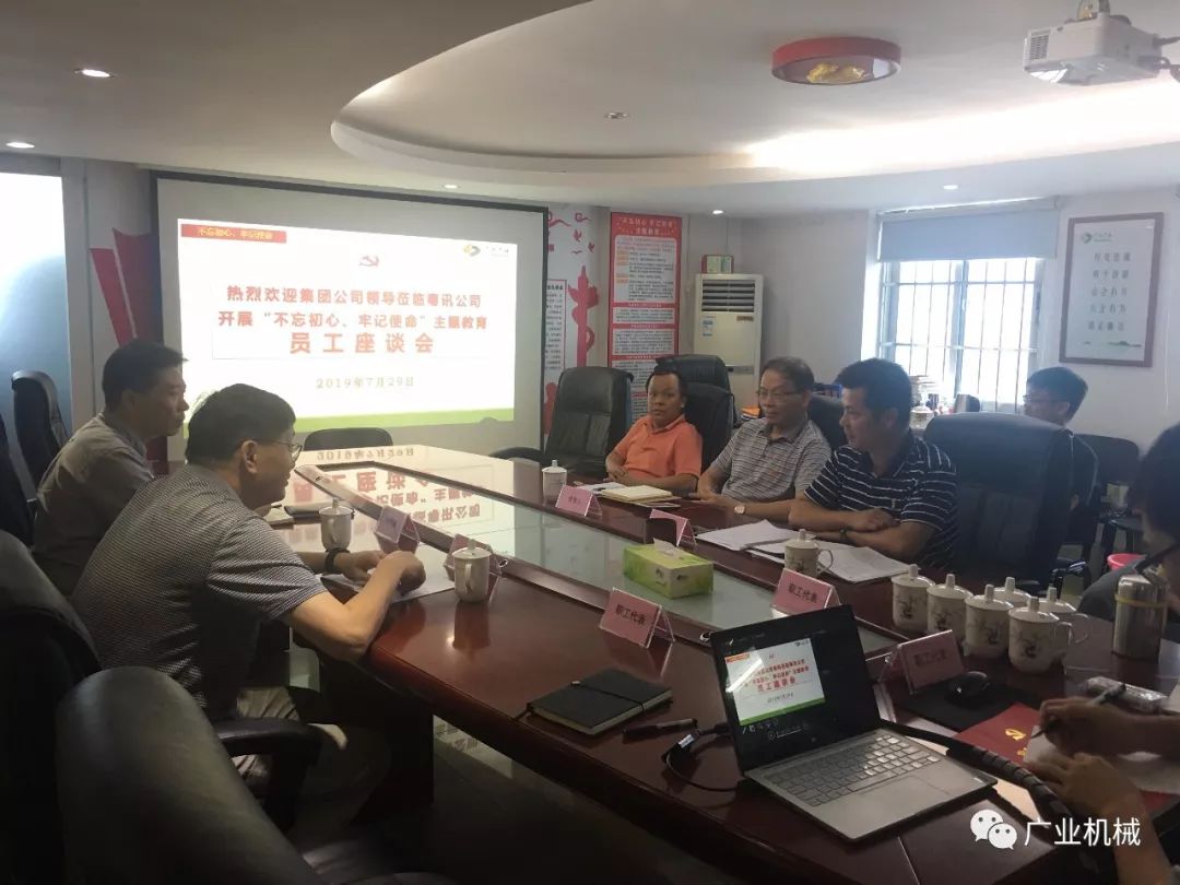 7月29日下午,机械集团党委副书记、总经理王志宏到粤讯公司开展“不忘初心、牢记使命”主题教育。