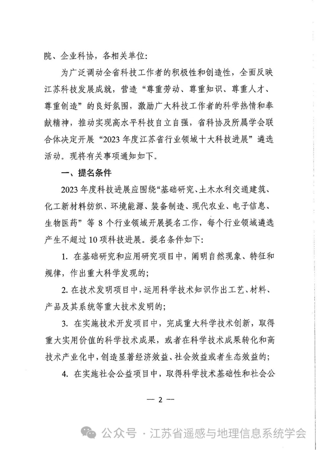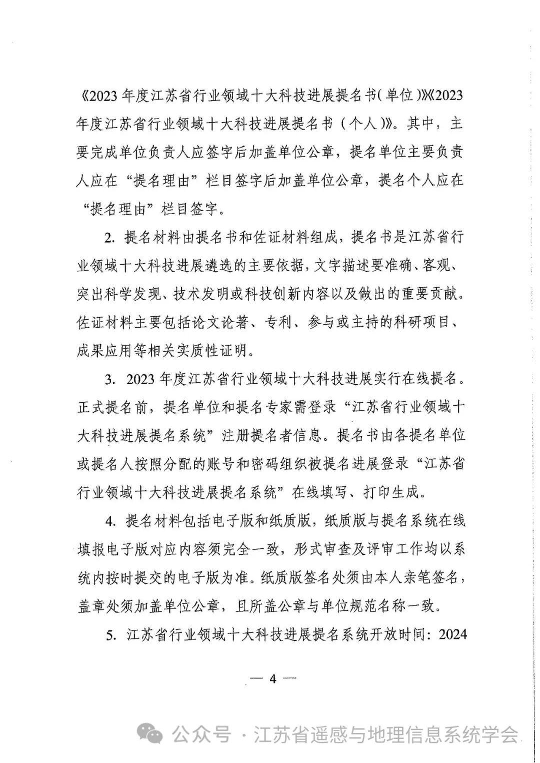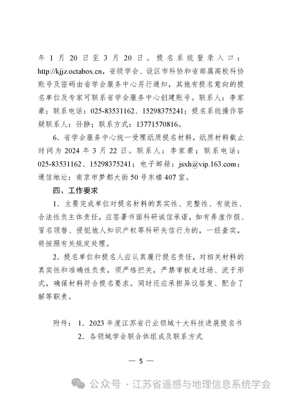 有意向申报的单位请于2024年3月1日前将《提名书》及相关佐证材料以电子邮件形式报送至学会秘书处。邮件统一命名为“2023年度江苏省行业领域十大科技进展提名+单位名称”。