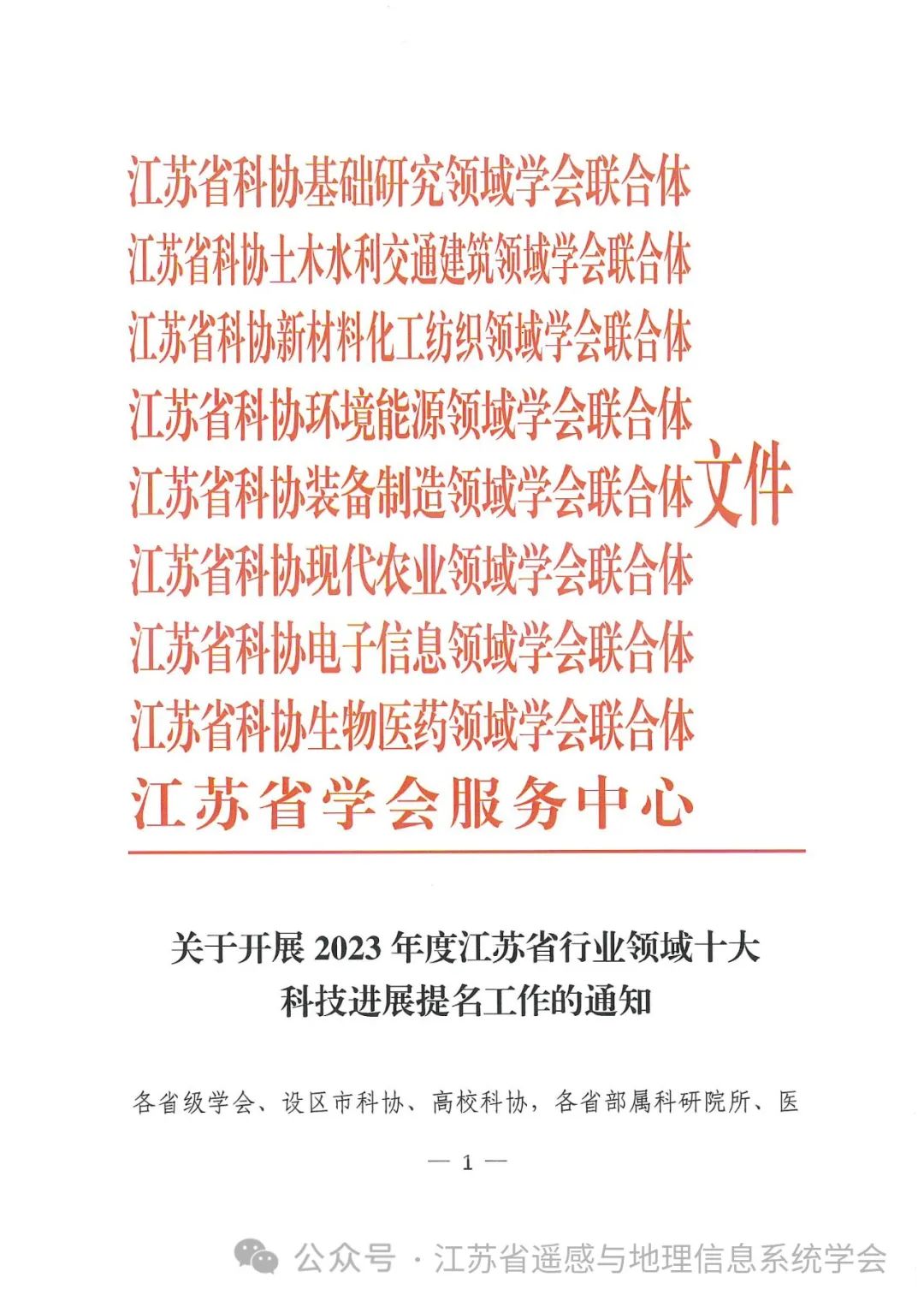 省科协及所属学会联合体开展了“2023年度江苏省行业领域十大科技进展”遴选活动。2023年度科技进展围绕“基础研究、土木水利交通建筑、化工新材料纺织、环境能源、装备制造、现代农业、电子信息、生物医药”等8个行业领域开展提名工作,每个行业领域遴选产生不超过10项科技进展。相关通知请见下方附件。