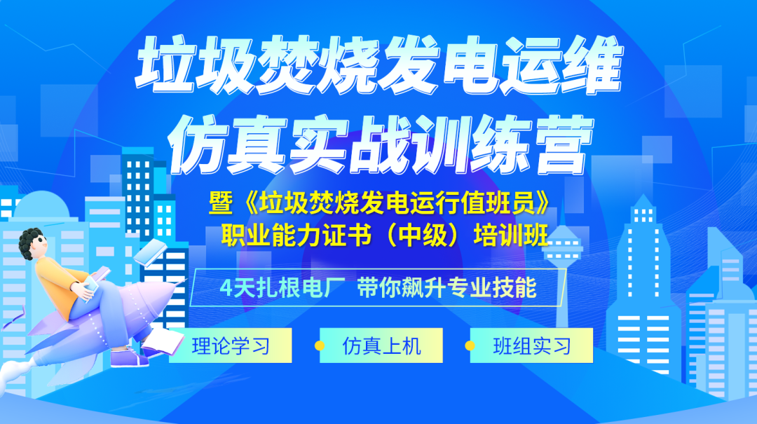 垃圾焚烧发电行业首个职业能力证书报名中!《垃圾焚烧发电运维·仿真实战训练营》课程,通过“理论知识+仿真实操+班组实习”相结合的教学模式,让学员在最短的时间内专业技能得到快速提升成为主值班员!