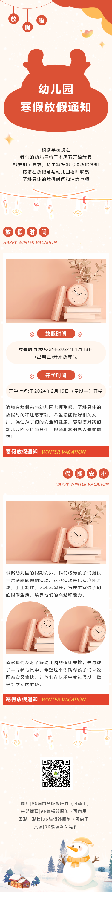 除了放假安排相关的图文模板外,也给你们准备了相应的寒假主题海报,方便你们插入到图文中或者安排发朋友圈~海报均来自找图网(https://www.zhaotu.com/),都可商用哦~