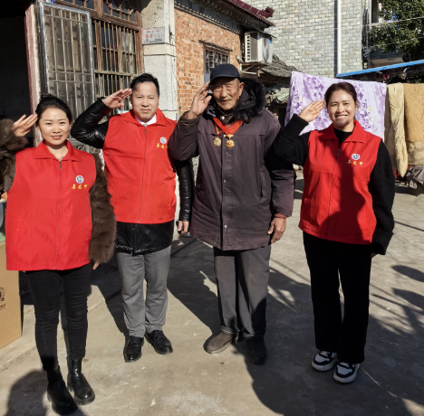 商会一行人与老兵落实结对关爱、传承红色精神的行动计划,为老兵送上美好的祝福,以特殊方式表达对老兵的敬意。