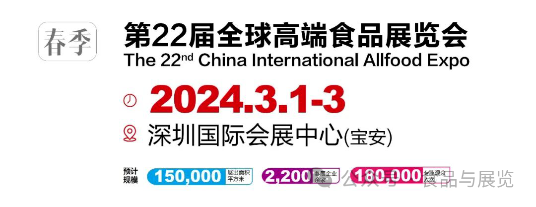 全食展,即全球高端食品饮料展览会,是全球最具影响力的食品展之一。自举办以来,全食展已经发展成为全球食品行业的重要交流平台,吸引了来自世界各地的专业人士和企业参展。2024年的全食展将于2024年3月1日至1日在深圳国际会展中心(宝安)举办,预计将有来自多个国家和地区的参展商参加。