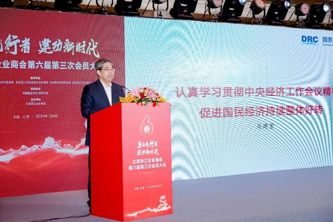会议请第十四届全国政协常委、经济委员会副主任马建堂对中央经济工作会议精神进行了解读。马主任赞叹浙商“是一个了不起的群体”,“过去40多年来,你们白手起家,艰苦创业,创造了‘三个浙江’——省域浙江、中国的浙江、全球的浙江,锻造了浙商经济的强大韧性和澎湃动力。”