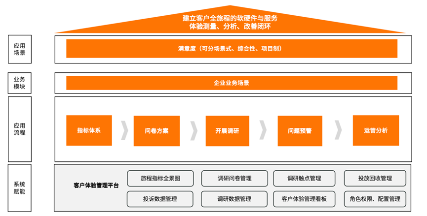 (1)建立统一的体验度量标准:提高客户满意度反馈的可比性、统一性、清晰性,高效且深入的获得洞察,并将指标落实到具体负责人,实现真正闭环管理。