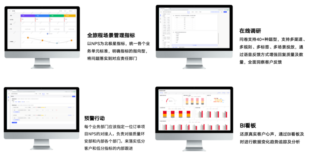 其次,在当前商业环境中,NPS凭借其可比性、统一性、清晰性、相关性和落实性等特点,被视为北极星指标,为企业提供一个明确的方向。而NPS监测管理系统可以主动式、全天候、场景化的追踪客户反馈,及时了解各环节现状,洞察客户满意度变化。
