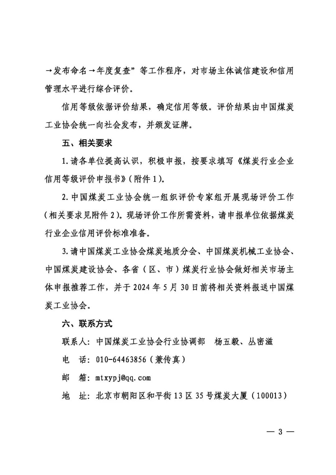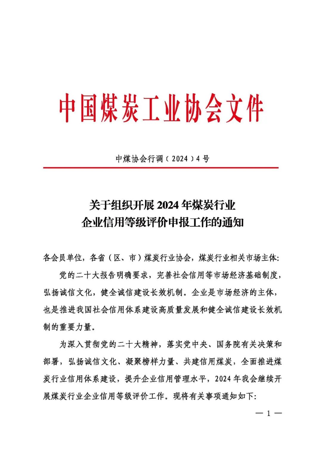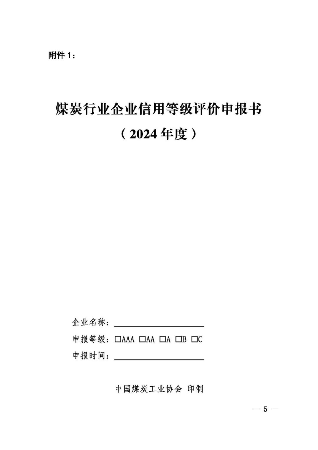 关于组织开展2024年煤炭行业企业信用等级评价申报工作的通知