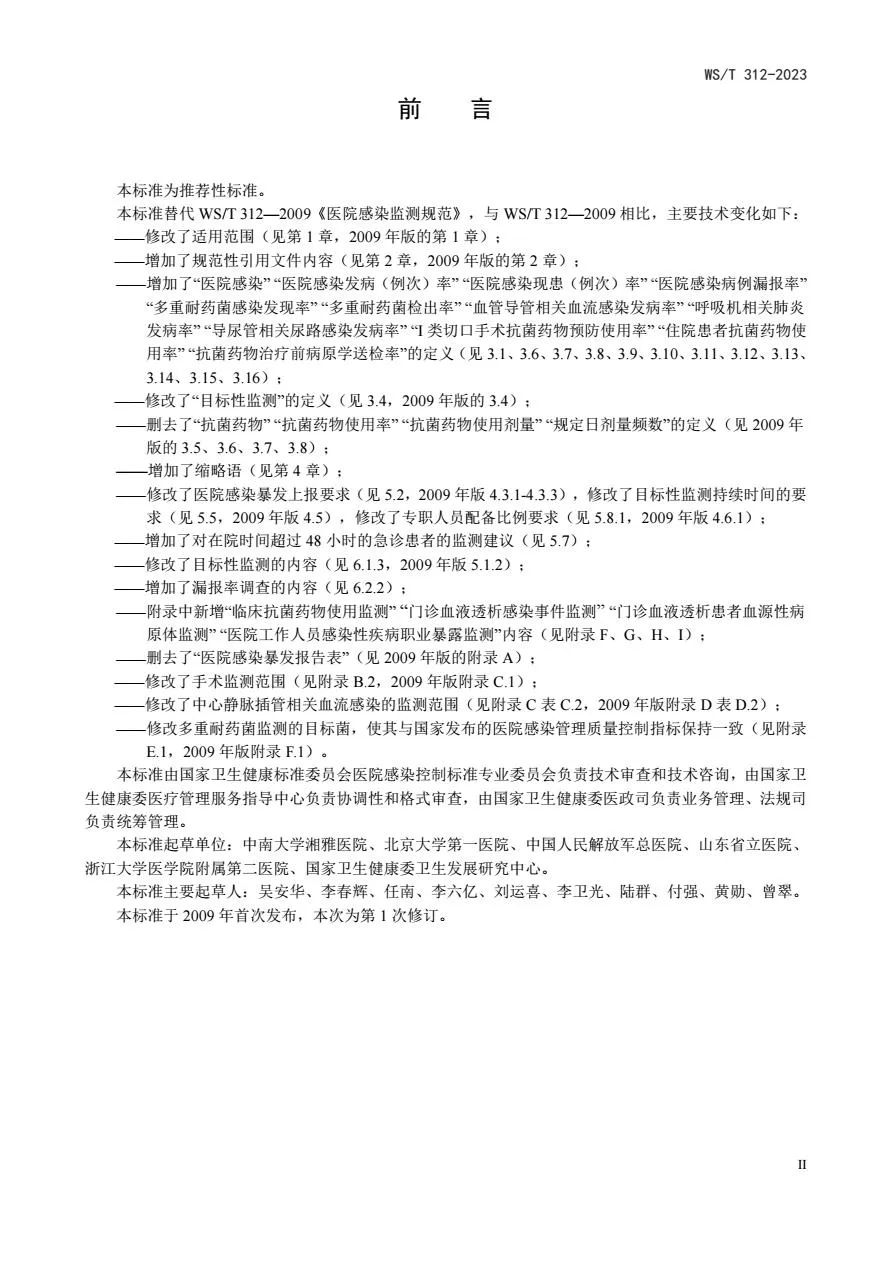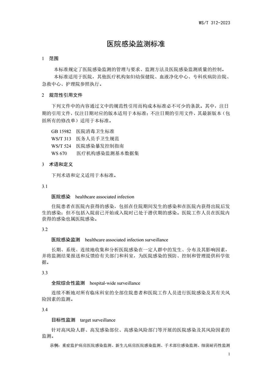 行业标准丨医院感染监测标准(WS/T 312-2023)