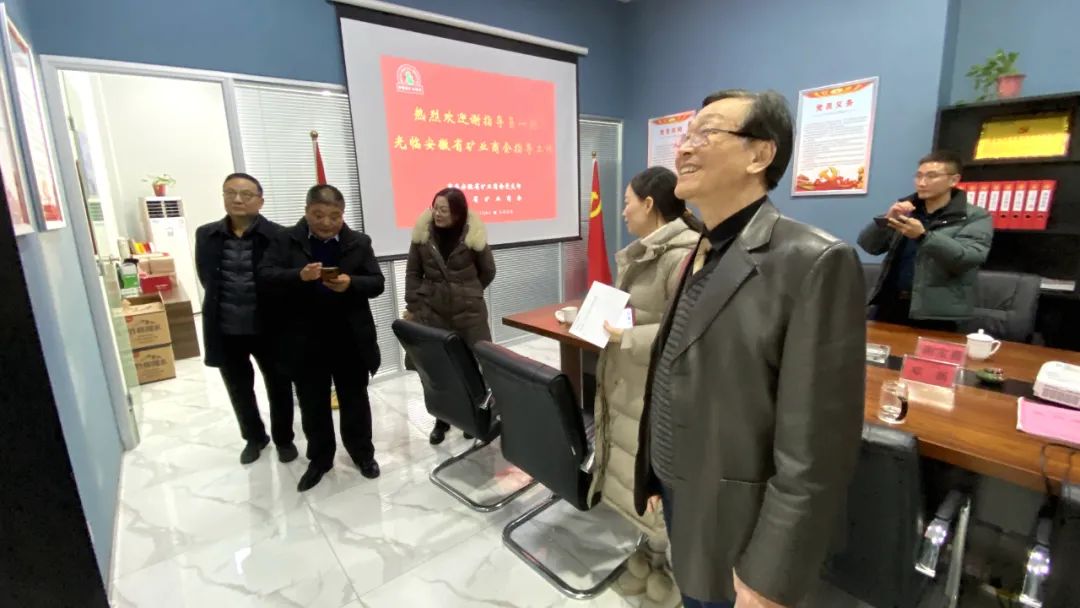 安徽省矿业商会党建指导员许敬,会长邓新,支部书记徐甫专,组织委员李桂文参与座谈并介绍党建工作经验。